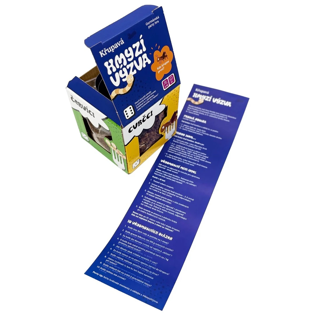 Jeu de fête amusant avec des insectes comestibles de Sens. Lancez, amusez-vous et goûtez des vers, des grillons, des sauterelles et des vers. Idéal comme cadeau amusant.