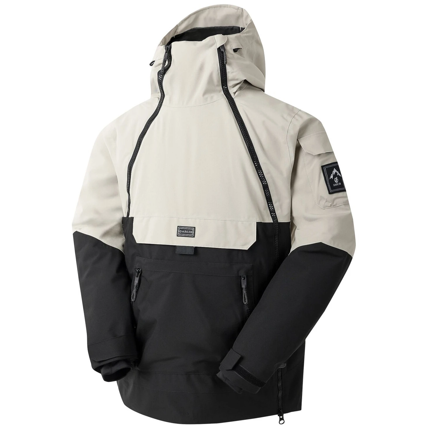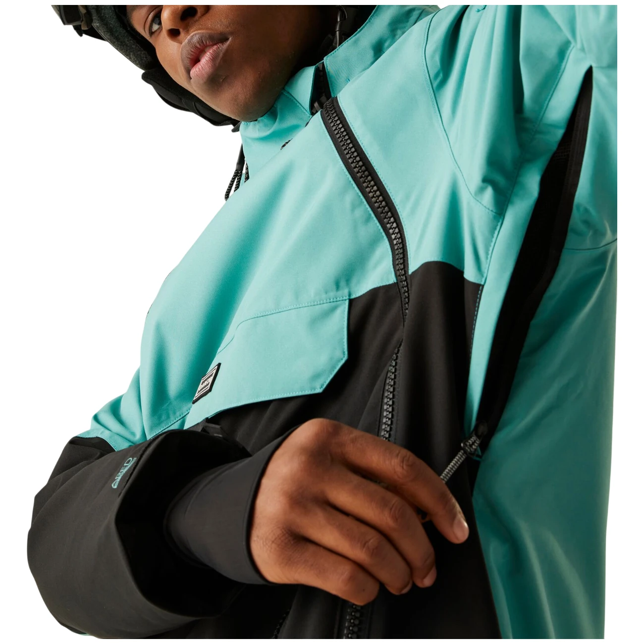 La veste est équipée d'une poche pour forfait de ski, d'une jupe pare-neige fixe avec adhérence en gel et d'une poche kangourou zippée à l'avant. Grâce aux fermetures éclair latérales pratiques, un accès facile et une meilleure manipulation sont assurés lors de l'habillage.