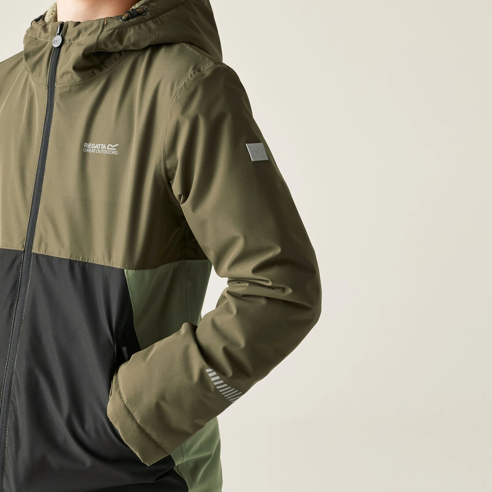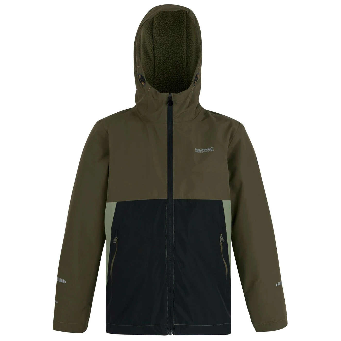 La veste pour enfants Hillain Warm Lined de Regatta est dotée d'une doublure en polaire borg et de détails réfléchissants. La capuche fixe et les poches zippées la rendent idéale pour les journées d'école ou les jeux en plein air par temps imprévisible.