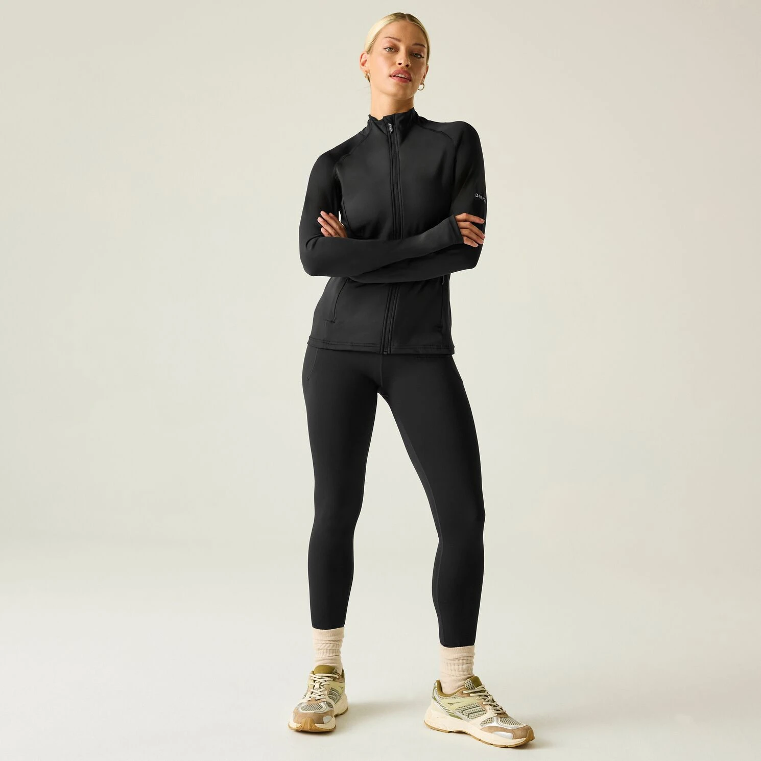 Les détails pratiques, tels que la fermeture éclair sur toute la longueur, les passe-pouces et les deux poches zippées, améliorent la fonctionnalité et le confort. De plus, les coutures verticales redessinent la silhouette et contribuent à une coupe flatteuse et bien ajustée, pour que vous vous sentiez en confiance quelle que soit votre activité.