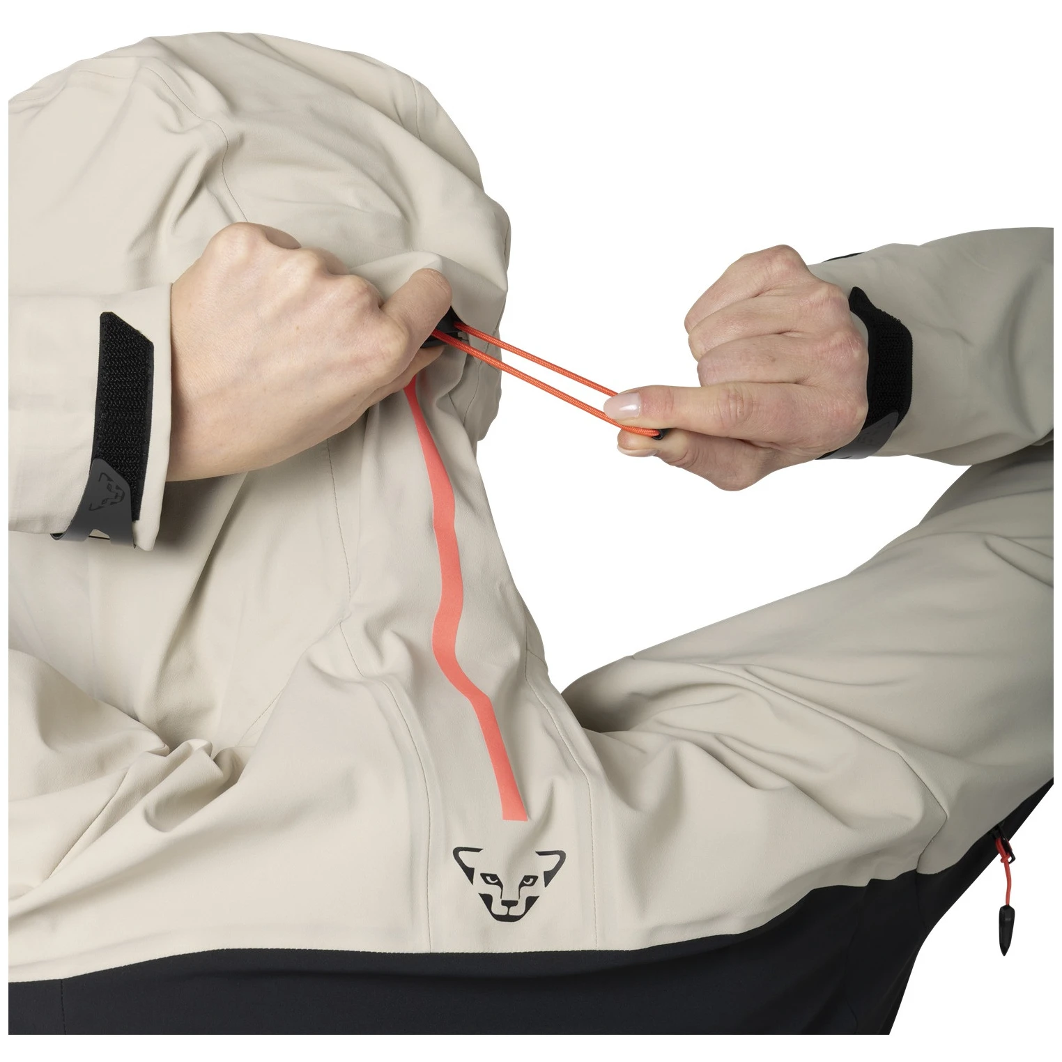 La veste est dotée d'une fermeture éclair intégrale et de plusieurs poches pour ranger de petits objets. La capuche réglable et les poignets stretch offrent une protection supplémentaire. Le cordon de serrage à l'ourlet assure un maintien antidérapant parfait.