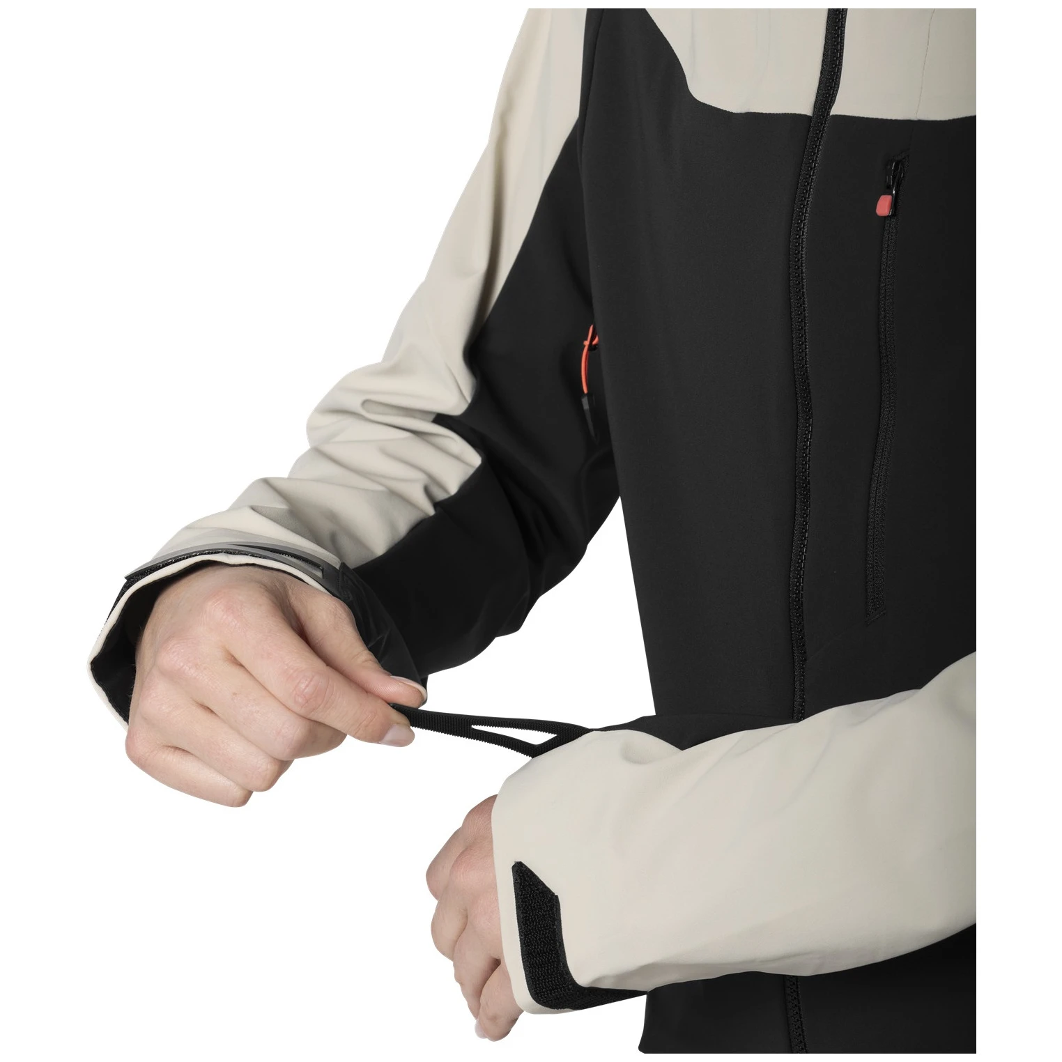 Elle est 100 % coupe-vent et vous offre une protection efficace contre la pluie légère ou la neige grâce au traitement DWR sans PFC. Grâce à la haute respirabilité du tissu résistant, vous ne transpirez pas lors des montées difficiles et votre température corporelle reste toujours parfaitement régulée. L'intérieur gratté du tissu est agréablement doux au toucher. Les zips sous les bras offrent une ventilation supplémentaire lors des journées chaudes ou en cas d'effort particulièrement intense.
