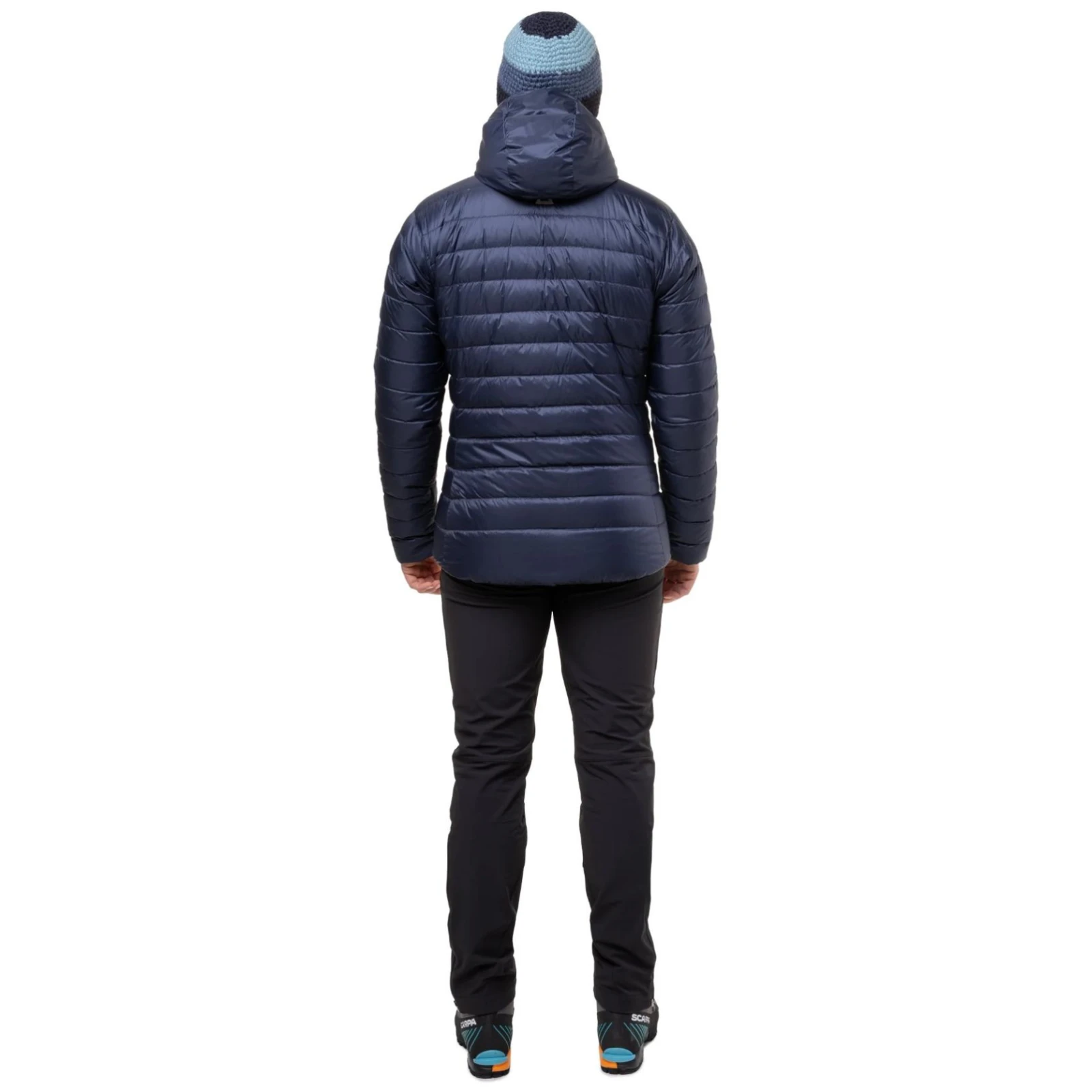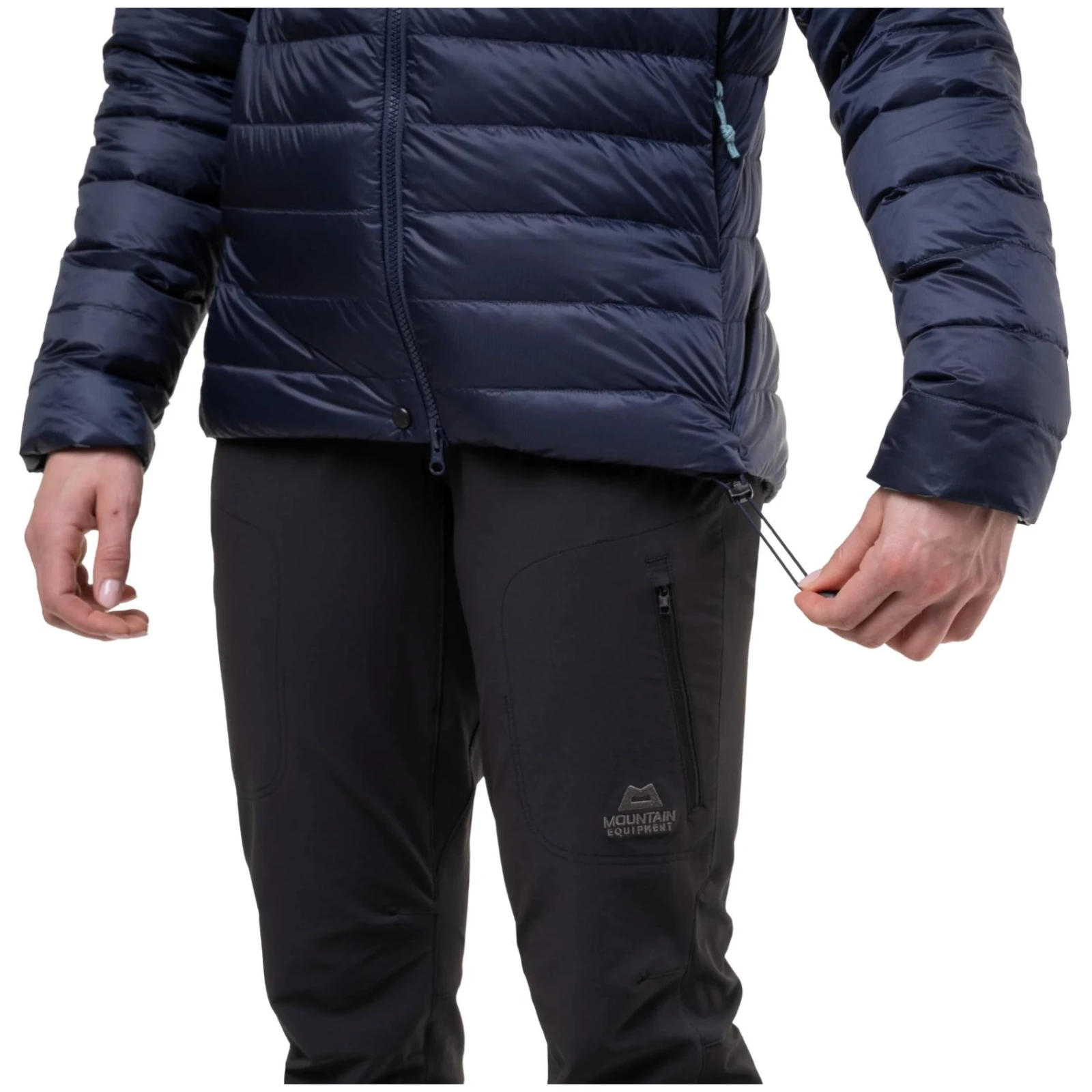 ourlet inférieur de la veste réglable à l'aide de cordons de serrage. Cordon séparé pour serrer les parties avant et arrière, afin d'éviter qu'il ne s'accroche au mousqueton lorsque tu l'attaches à l'anneau de matériel du harnais d'escalade.