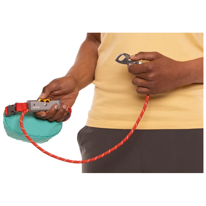 Bien sûr, il y a la qualité et l'innovation de l'équipement Ruffwear. Mousqueton résistant Crux Clip™ avec clip de verrouillage de sécurité, corde solide avec âme, rembourrage doux pour le confort de l'utilisateur et poche avant servant de distributeur de sacs.